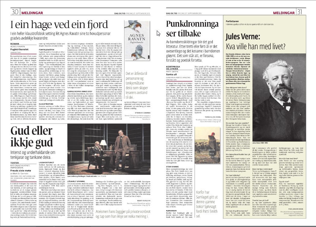 I september 2013 anmodet det nynorsk-språklige kulturmagasinet Dag og Tid om en tekst i deres forfatterportrett -serie: