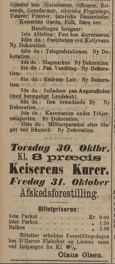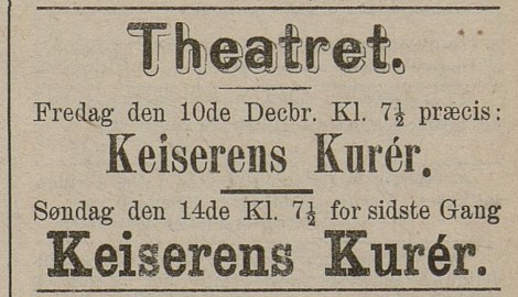 «Keiserens kurer» Trondhjem – premiere 1. januar 1886