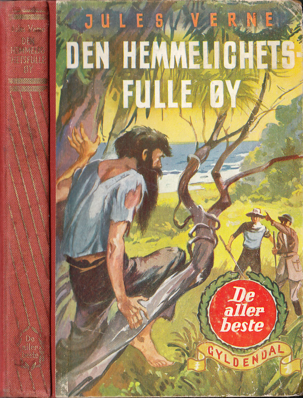 Neste gang Vernes fortellerkunst tilbys et norsk publikum skjedde dette ikke bare i bokform. Som vi skal se satte forfatteren virkelig spor etter seg i Norge en sommer tre år senere, både med stor suksess på teater og gjennom en påkostet bokutgivelse. Samtidig som oversettelsen til Steensballe gis ut i Norge, avslutter Jules Verne skrivingen av Den hemmelighetsfulle øya. Fortelllingen L’Île mystérieuse trykkes første gang i Hetzel-forlagets familiemagasin, Magasin d’Éducation et de Récréation fra januar 1874 til desember 1875. I illustrert bokform kom verket ut i Paris 22. november 1875 med 154 tegninger av Jules-Descartes Férat, gravert av Charles Barbant. Kort tid deretter var Den hemmelighedsfulde Ø å få kjøpt i Norge. Det er i nordisk[4] sammenheng bemerkelsesverdig at allerede halvåret etter at den illustrerte franske originalteksten kom i salg, makter det nokså nystartede Cammermeyers forlag i Christiania å gi ut en meget fyldig oversettelse som i tillegg gjengir hele 138 av Férats bilder. Mitt eksemplar på tre bind fra 1876 har 760 sider gotisk skrift.