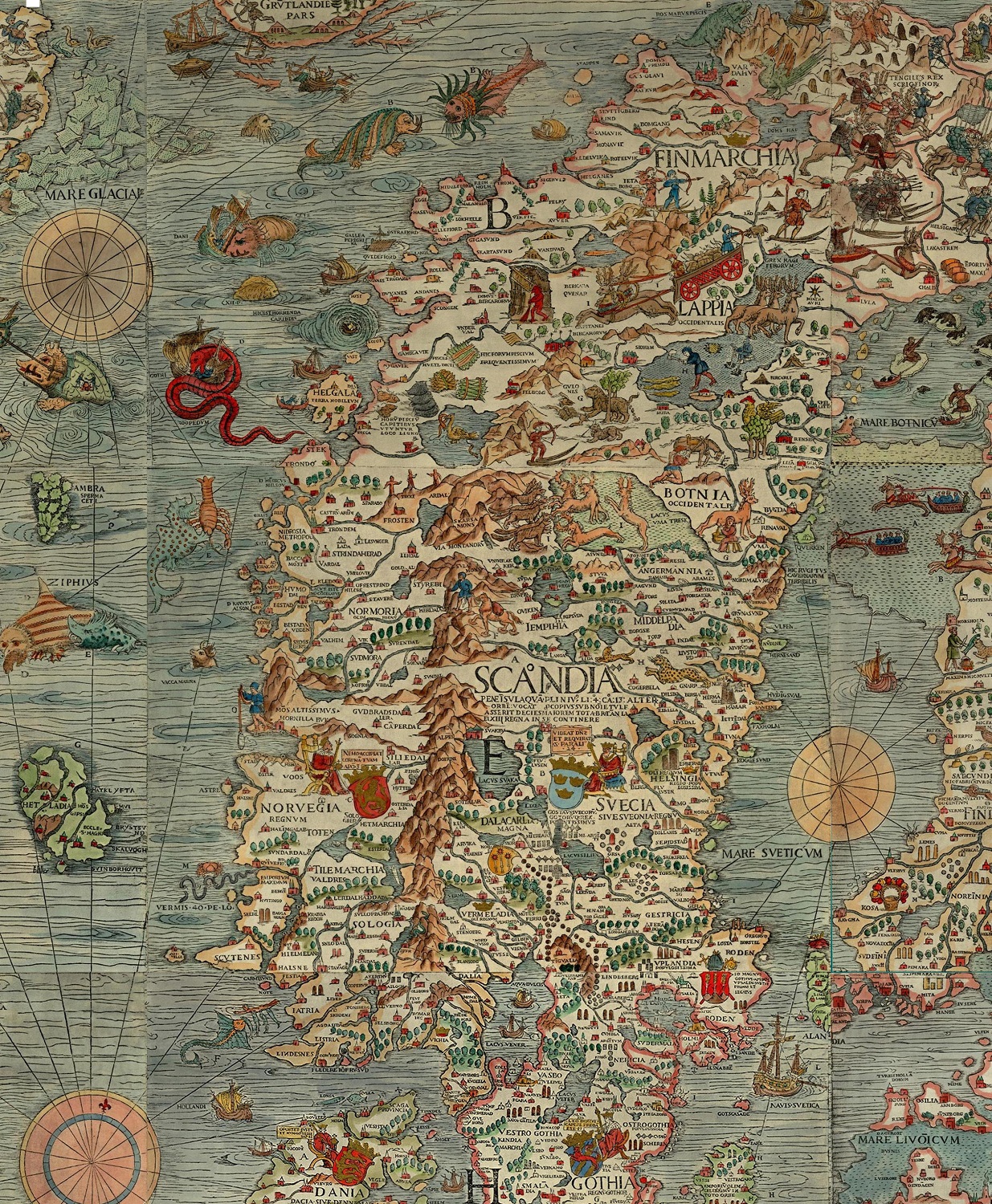 ‘Carta Marina’ (1539) by Olaus Magni – Maelstrom and gulf of Botnia