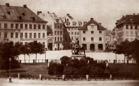 «Nous nous rendîmes à Kongens-Nye-Torw, place irrégulière où se trouve un poste avec deux innocents canons braqués qui ne font peur à personne. Tout prés, au n° 5, il y avait une «restauration» française, tenue par un cuisinier nommé Vincent; nous y déjeunâmes suffisamment pour le prix modéré de quatre marks chacun. Puis je pris un plaisir d’enfant à parcourir la ville; mon oncle se laissait promener; d’ailleurs il ne vit rien, ni l’insignifiant palais du roi, ni le joli pont du dix-septième siècle qui enjambe le canal devant le Muséum, ni cet immense cénotaphe de Torwaldsen, orné de peintures murales horribles […]» (V.Centre Terre)