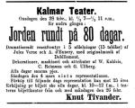 Later, in 1876 Tivander in fact put up Verne´s Around the world in 80 days, with a live elefant(!), and his wife doing the part of Aouda. This play was a huge success in the capital, and according to sources was shown 100 times.