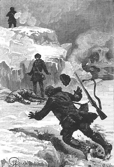 Illustrasjoner fra den franske bokutgivelsen av romanen på Jules Vernes forlag J.Hetzel & Cie, i 1885, ble utført av den franske kunstneren George Roux. Her vises alle de 24 bildene.