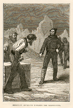 “Ikke bare hadde han [Louis, den franske ”helten”] måttet kjempe mot elementene, men også mot det stygge temperamentet til de to norske sjømennene, som skyldte ham sitt liv. De var som ville, nesten helt utilnærmelige overfor de mest naturlige følelser.“ […]